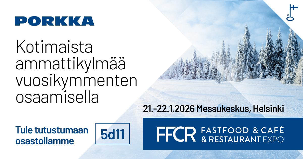 FastFood & Café & Restaurant Expo (FFCR) kokoaa jälleen kerran HoReCa-alan ammattilaiset Helsingin Messukeskukseen 21.-22.1.2026. Myös Porkka on tapahtumassa mukana, löydät meidät osastolta 5d11!